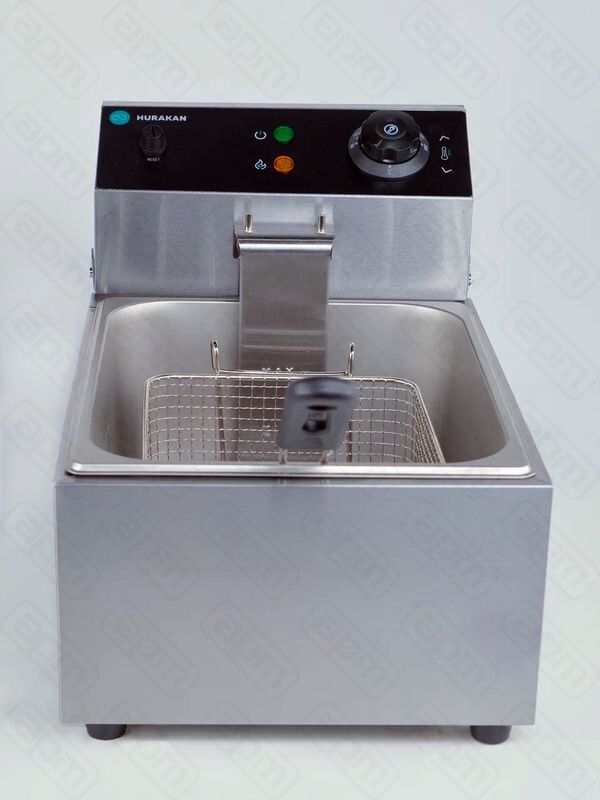 Hurakan HKN-FR6E — промышленная фритюрница для предприятий общественного питания и торговли, предназначенная для приготовления широкого ассортимента блюд во фритюре. Модель оснащена современной электромеханической системой управления и возможностью регулировки температуры, что позволяет готовить качественные блюда в больших объемах. Конструкция из нержавеющей стали обеспечивает надежность и гигиеничность использования.