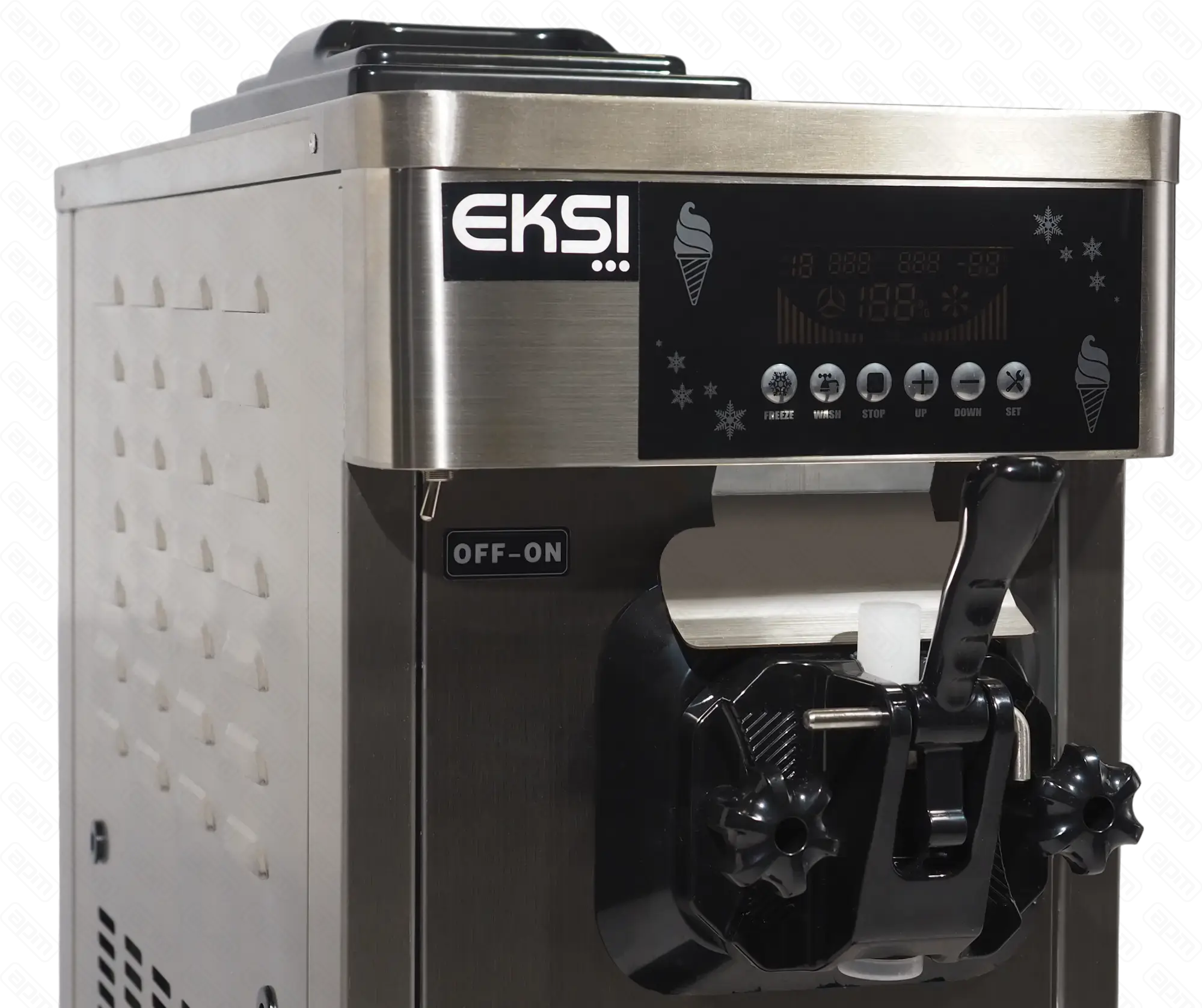 Фризер для мягкого мороженого т.м. EKSI серии ICT, мод. ICT-120Ps (помпа), 1 бункер, компрессор Panasonic, R290, 1500 Вт, 220В, 16-18 л/час, 340x715x780 мм