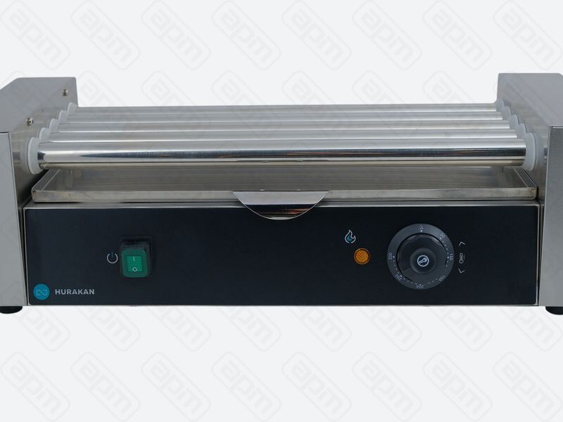 Hurakan HKN-GW5M — роликовый гриль для приготовления колбасных изделий и мяса методом равномерного обжарки на вращающихся роликах. Предназначен для предприятий общепита и розничной торговли, оснащён регулятором температуры и индикатором готовности продукта. Конструкция выполнена из качественной нержавеющей стали, обеспечивающей долговечность эксплуатации.