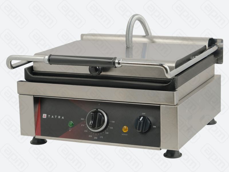 Прижимной гриль Tatra TCG 3627 SS идеально подходит для быстрого приготовления мясных, рыбных, овощных блюд и разогрева полуфабрикатов на предприятиях общественного питания и торговли. Обеспечивая высокую производительность, гриль оснащен электромеханическим управлением с функцией регулировки температуры и наглядными индикаторами нагрева и включения. Емкость для сбора жира значительно упрощает уход за оборудованием. Основной материал корпуса — нержавеющая сталь, обеспечивающая длительный срок службы и простое содержание в чистоте.