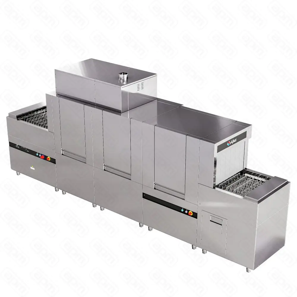 Габариты: 5020х1017х2220 мм, 48000 Вт, 380 В, размеры проема 715х460 мм, теплообменник, сушка, 2000 тарелок/час, 4 программы мойки, 2 дозатора (моющий, ополаскивающий), насос мойки.