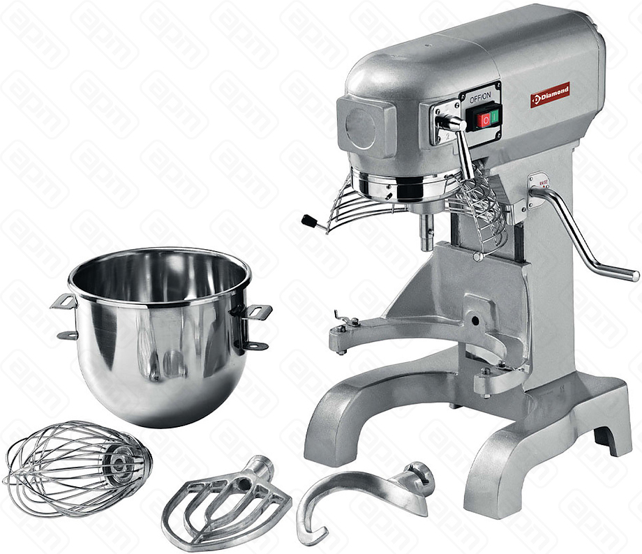 Sirman Plutone 10 — профессиональный планетарный миксер, созданный для работы на профессиональных кухнях ресторанов, кафе, пекарен и кондитерских. Применяется для замешивания теста жидкой и средней консистенции, включая белковые, заварные, дрожжевые и бисквитные виды, а также для изготовления пюре, майонезов, соусов и взбитых сливок. Устройство оснащено мощным вентиляторным охлаждением двигателя, системой защиты от повреждений при открытии чаши и корпусом из устойчивого окрашенного сплава.