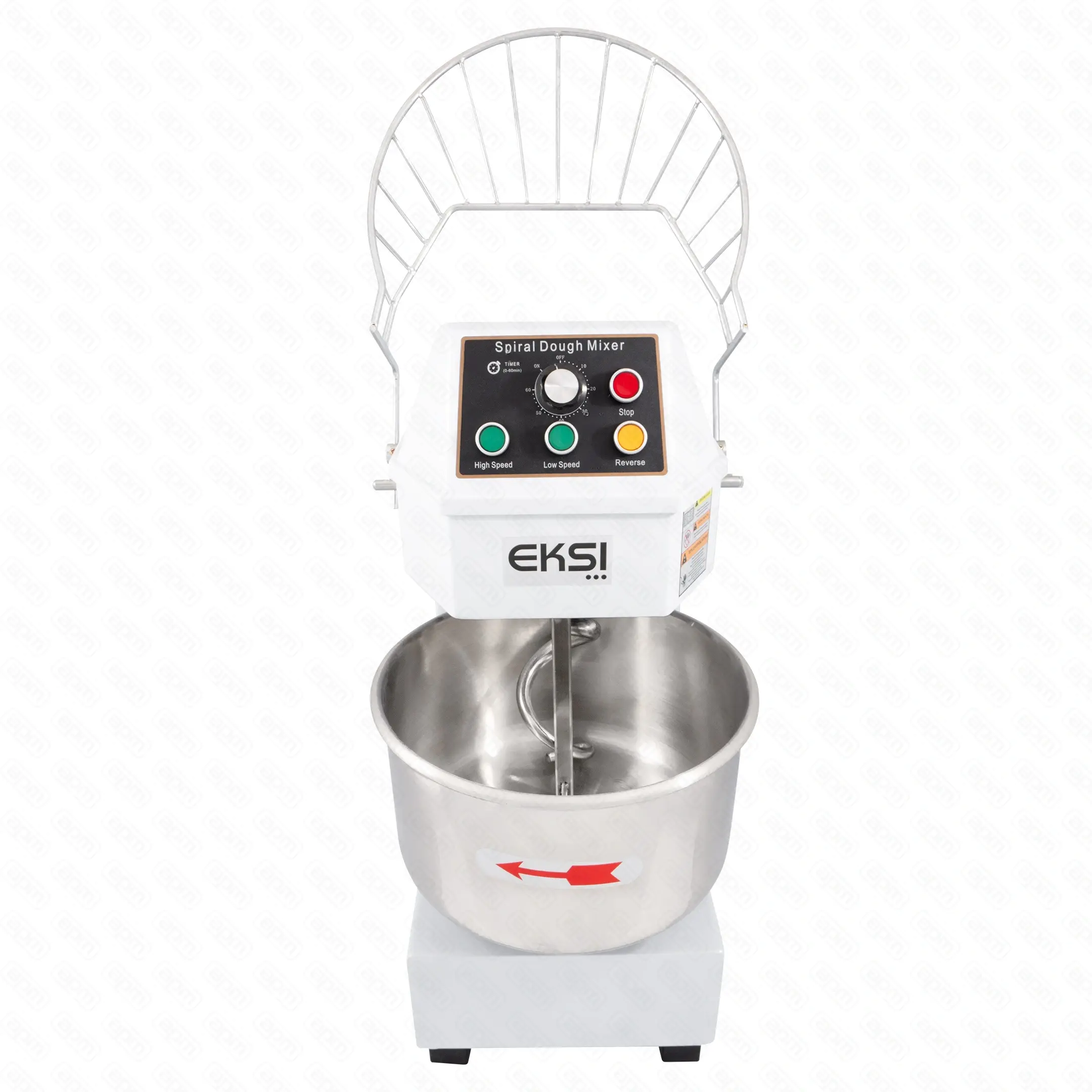 Тестомес спиральный т.м. EKSI, модель SH20B, 2 скорости + инвентер, 220В, 1500Вт, объем дежи 20.5 л, загрузка теста 8 кг, скорость дежи 18/29 оборотов в минуту, скорость насадки 187/293, 700х380х785 мм, вес нетто 85 кг