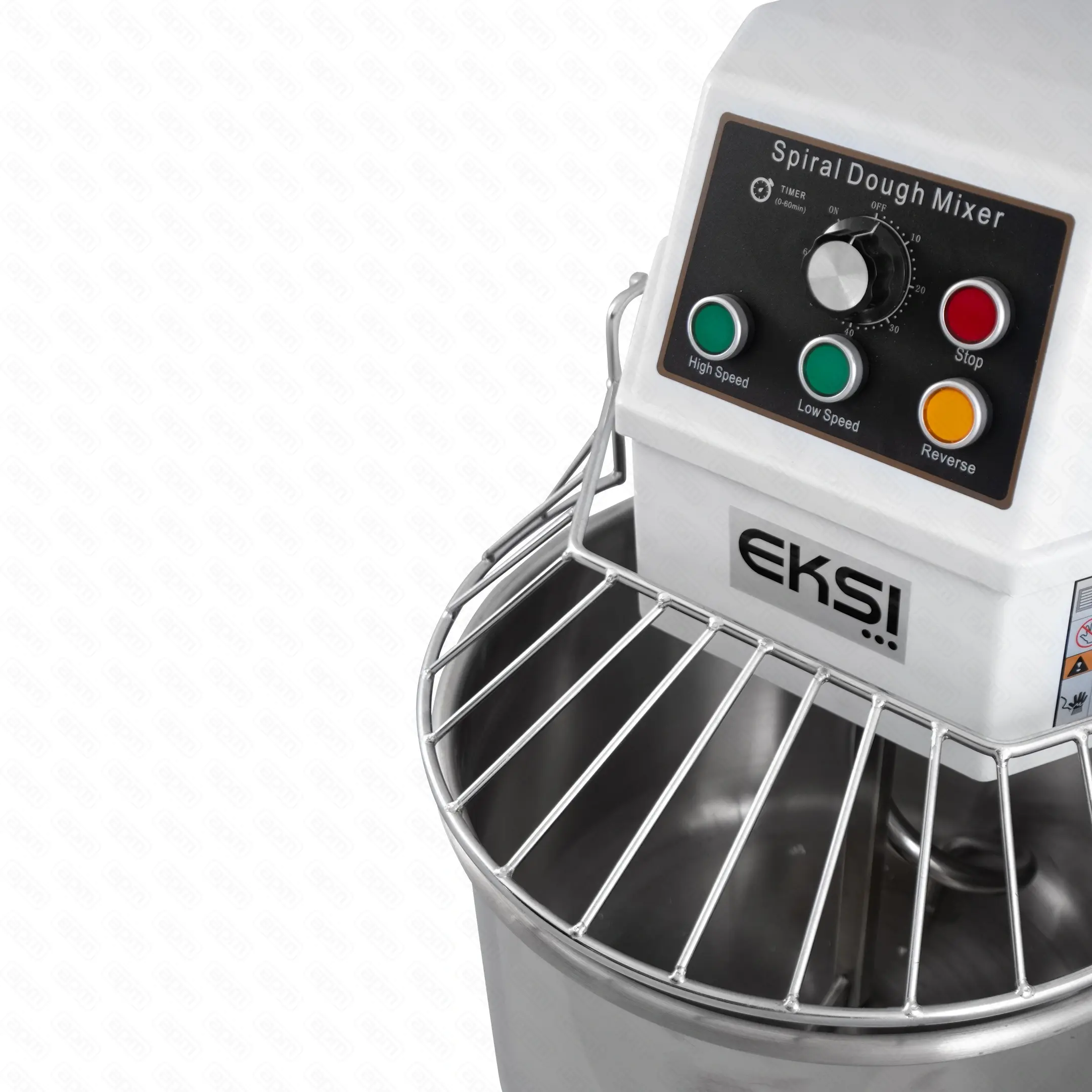 Тестомес спиральный т.м. EKSI, модель SH30B, 2 скорости + инвентер, 220В, 2200Вт, объем дежи 31 л, загрузка теста 12 кг, скорость дежи 17/27 оборотов в минуту, скорость насадки 172/269 оборотов в минуту, 745х430х850 мм, вес нетто 100 кг