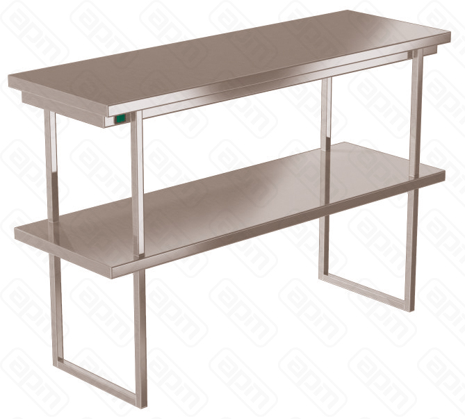 – Верхний уровень с подогревом, нижний - нейтральный – Полки изготовлены из нержавеющей стали марки AISI 430 толщиной 0,8 мм – Каркас - труба 20х20 мм из нержавеющей стали марки AISI 430 толщиной 1,2 мм – Температура в зоне действия нагревательного элемента: до +60 С (+/-5 С) – Поставляется в разобранном виде