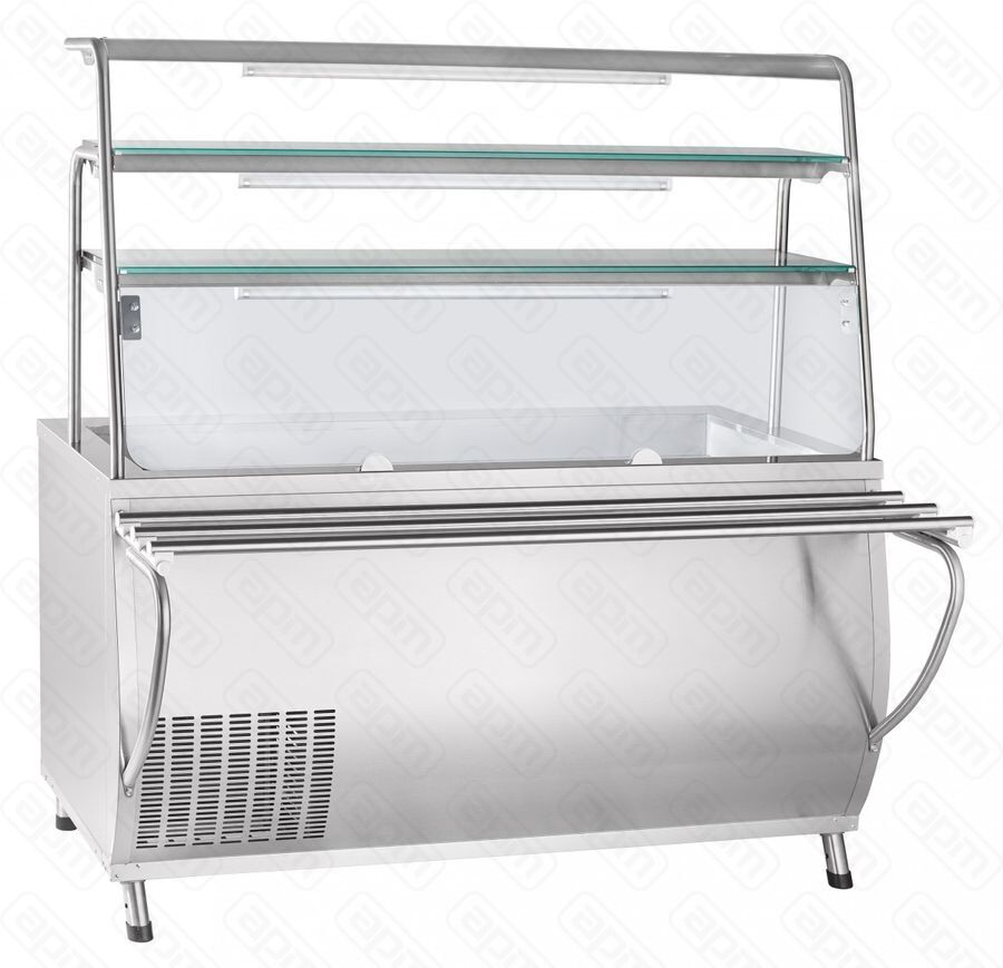 Прилавок-витринаAbat ПВВ(Н)-70Т-01-НШпредназначен для демонстрации, охлаждения, кратковременного хранения блюд, холодных закусок и напитков в составе линий раздач на предприятиях общественного питания и торговли. - Диапазон температуры плавно регулируется от 1 до 10 °С. - Закрытая охлаждаемая витрина прилавка имеет большую полезную площадь и используется для выкладки блюд и напитков. - Основание витрины представляет собой охлаждаемую ванну с набором гастроемкостей, предназначенных для хранения салатов. - Прилавок-витрина оснащен лампой подсветки. - Принудительнаяциркуляцияохлажденного воздуха. - Все элементы конструкции выполнены из высококачественной нержавеющей стали. - В комплект входят направляющие для подносов. - Оснащена регулируемыми по высоте ножками.