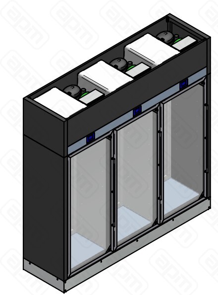 Код A1WW3BV5W/873+GK20080009*6+MO20430001*MO20430003*8, 2130х630х2150мм, 1,3кВт, 220В, +4...+18С, 520кг, 1371л, до 504 бутылок, с встр.агр. R290, цвет - серебристый алюминий 873 по каталогу, 6 полок типа С+8 полок типа Р. 3 двери спереди, сзажи глухая стенка
