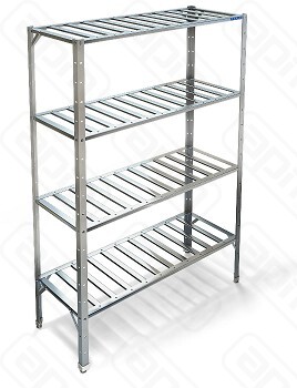 Стеллаж ТЕХНО-ТТ СТР-024/1806 РЕШЕТЧ. предназначен для хранения посуды и инвентаря, а также сухих продуктов на предприятиях общественного питания и торговли. Особенности: