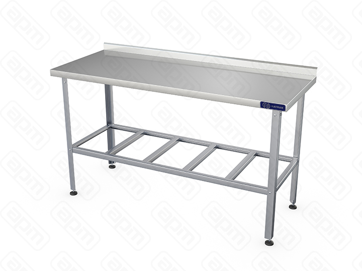 Стол пристенный KAYMAN СП-244/0608-А предназначен для использования на предприятиях общественного питания, торговли, для разделывания и обработки пищевых продуктов, а также в качестве вспомогательной поверхности для кухонного оборудования. Особенности: