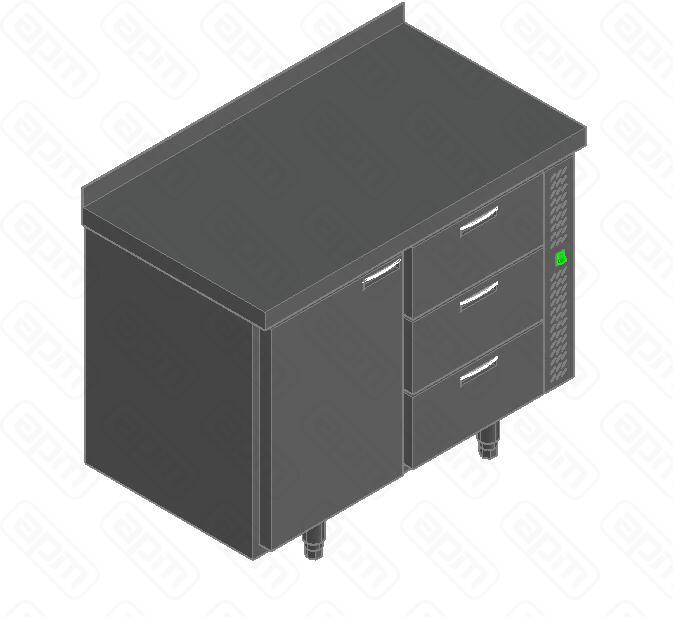 Конструкция стола включает в себя стальную столешницу, двухсекционную холодильную камеру.