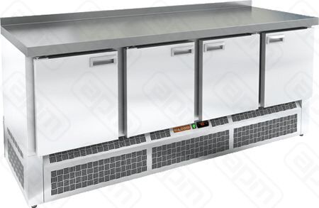 Конструкция стола включает в себя стальную столешницу, четырехсекционную холодильную камеру.