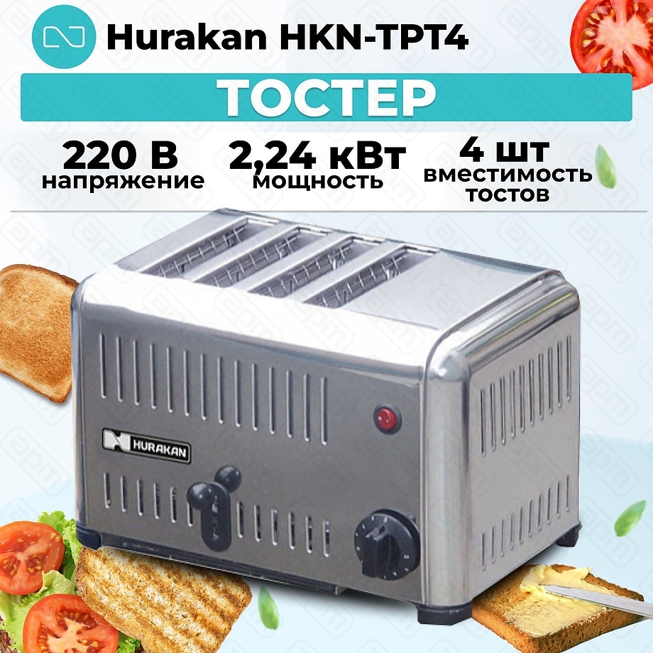 Hurakan HKN-TPT4 — надежный тостер, разработанный для предприятий общественного питания и торговли, позволяющий быстро и эффективно обжаривать кусочки хлеба размером 100х100х10 мм. Таймер на пять минут помогает правильно определить время жарки, исключив подгорание или недостаточную прожарку продукта. Наружная оболочка из нержавеющей стали обеспечит устройству долговечность и стильный внешний вид.