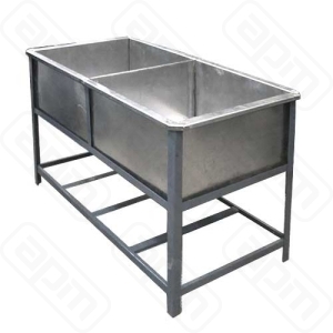 Каждая стальная чаша ванны изготовлена из нержавеющей стали AISI 304 и имеет следующие размеры (мм): 530 (ширина), 530 (глубина), 400 (высота), которые позволяют загрузить достаточно большое количество посуды или продуктов. Чаши оснащены сточными отверстиями и отверстиями, уберегающими от перелива воды.