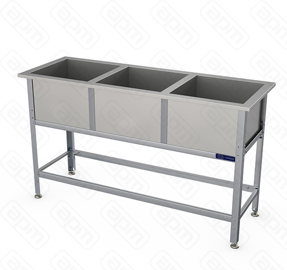 Трехсекционная моечная ванна KAYMAN ВМ-713/800-А предназначена для мытья, дезинфекции и ополаскивания использованной посуды и инвентаря. Используется на предприятиях общественного питания и торговли.