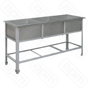 Тройная моечная ванна, производства Техно-ТТ (Россия) модель ВМ 41/557, предназначена для мытья посуды, продуктов, кухонного инвентаря, рук и т.д. Этот вид технологического оборудования, согласно требованиям санитарно-эпидемиологических норм, является важным атрибутом любого предприятия питания, начиная от небольшого кафе и заканчивая крупными ресторанами или фаст-фудами.