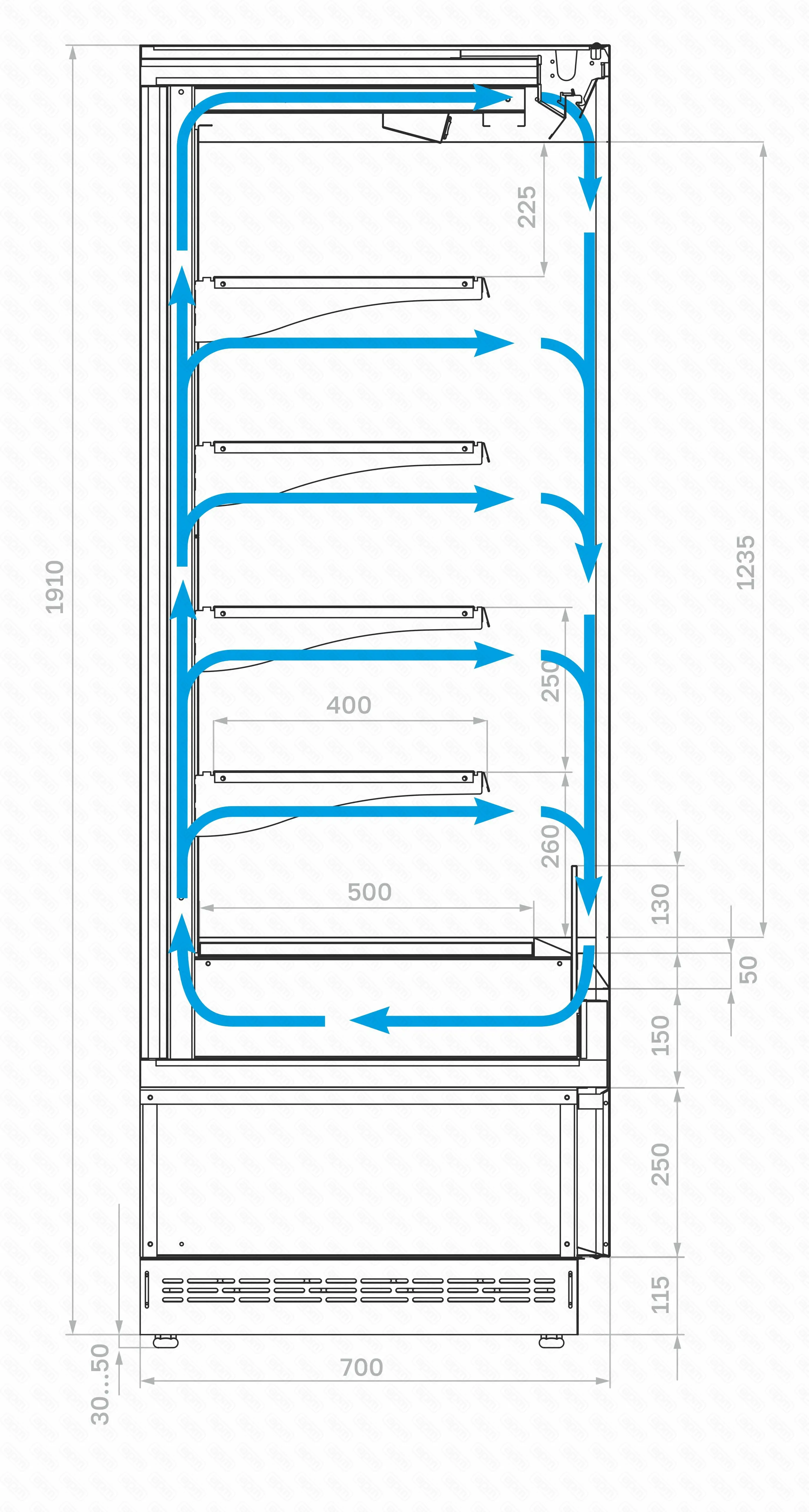 1050х700х1910(1960), темп.режим 0...+7, напр.220В.