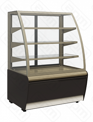 Витрина кондитерская холодильная открытая, 3 полки, темп.режим 0...+7С, эксп.площадь 1,26 кв.м, потребление 7,0 кВт/сут, динамическое охлаждение, климатический класс 3, LED подсветка, электронный блок управления.