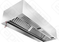 Зонт в форме короба приточно-вытяжной пристенный ТЕХНО-ТТ МВО-2,4МС-1,0ПК размещается над тепловым оборудованием, его предназначение - улавливание пара, тепла, продуктов сгорания, а также подача свежего воздуха, что благоприятно сказывается на микроклимате рабочей зоны на предприятии общественного питания.