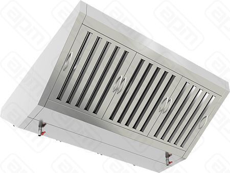 — Зонт вытяжной островной — Без козырька — Материал: нержавеющая сталь AISI 430 — С жировыми фильтрами типа "лабиринт"